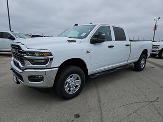12V power outlets 2 12V power outlets3-point seatbelt Rear seat center 3-point seatbelt4WD type Part-time 4WD5 Additional Gallons of Diesel Fuel50-Gallon Fuel Tank6.7L I6 Cummins HO Turbo Diesel Engine8-Speed TorqueFlite HD AutomaticTransmissionABS Brakes 4-wheel antilock (ABS) brakesABS Brakes Four channel ABS brakesAccessory power Retained accessory powerAdaptive cruise control Adaptive cruise control with stop and goAir conditioning YesAll-in-one key All-in-one remote fob and ignition keyAlternator Type AlternatorAltimeterAntenna Integrated roof audio antennaArmrests front center Front seat center armrestArmrests front storage Front seat armrest storageAuto door locks Auto-locking doorsAuto headlights Auto on/off headlight controlAux input jack Auxiliary input jackBasic warranty 36 month/36,000 milesBattery run down protectionBattery type Dual lead acid batteriesBed-rail protectors Pickup bed-rail protectorsBeverage holders Illuminated front beverage holdersBeverage holders rear Rear beverage holdersBlackBody panels Galvanized steel/aluminum body panels with side impact beamsBox style Standard style pickup boxBrake type 4-wheel disc brakesBright White Clear-Coat Exterior PaintBuilt-in virtual assistant Alexa Built-In built-in virtual assistantBulb warning Bulb failure warningBumpers front Chrome front bumperBumpers rear Chrome rear bumperCabin air filter N95+Bio cabin air filterCapless fuel fillerChild door locks Manual rear child safety door locksClimate control Automatic climate controlClock Digital clockConvenience GroupConvex spotter Power driver and passenger convex spotter mirrorsCorrosion perforation warranty 60 month/100,000 milesCruise control Cruise control with steering wheel mounted controlsCustomer Preferred Package 24ACustomer Preferred Package 2TACustomer Preferred Package 2UACylinder head material Iron cylinder headDEF fluid gauge Diesel exhaust fluid (def) gaugeDRL preference settingDelay off headlights Delay-off headlightsDistance alert Following distance alertDoor ajar warning Rear cargo area ajar warningDoor bins front Driver and passenger door binsDoor bins rear Rear door binsDoor handle material Black door handlesDoor locks Power door locks with 2 stage unlockingDoor mirror style Black door mirrorsDoor mirror type Manual extendable trailer mirrorsDoor mirrors Power door mirrorsDrive type Four-wheel driveDriver seat direction Driver seat with 4-way directional controlsElectronic stability control Electronic stability control system with anti-rollEmergency SOS Capable RAM Connect vehicle integrated emergency SOS systemEmissions ULEV II emissionsEngine Configuration Cummins High Output I6Engine Cummins High Output 6.7L I-6 diesel direct injection, VVT intercooled turbo, diesel, engine with 430HPEngine Location Front mounted engineEngine Mounting direction Longitudinal mounted engineEngine Short Cummins High Output 6.7L I-6Engine block material Iron engine blockEngine hour meterEngine retarder Engine retarder systemEngine temperature warningEngine/electric motor temperature gaugeExterior 120V AC power outlet 1 exterior 120V AC power outletExterior mirror mounted clearance lightsExternal memory Uconnect external memory controlFirst-row windows Power first-row windowsFloor console Partial floor consoleFloor console storageFloor coverage Full floor coverageFloor covering Full carpet floor coveringFloor mats Carpet front and rear floor matsFob engine con>Front License Plate Bracket