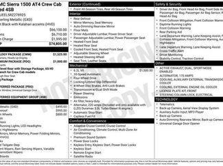 ***BLACK WIDOW*>***LIFTED***120-Volt Interior Power Outlet170 Amp Alternator2 Charge/Data USB Ports Inside Center Console2 Type-C Charge-Only Rear USB Ports220 Amp AlternatorAT4 Preferred PackageAT4 Premium PackageApple CarPlay/Android AutoAuto-Locking Rear DifferentialAutomatic Emergency BrakingBed View CameraBlack Chrome Header & Grille Insert BarsBuckle to DriveDual Active ExhaustFollowing Distance IndicatorForward Collision AlertFront License Plate KitFront Pedestrian BrakingFront Prem Floor Liners w/Removable Carpet InsertFront anti-roll barGMC Connected Access CapableHD Surround VisionHeated 2nd Row Outboard SeatsHeated Driver & Front Outboard Passenger SeatingHeavy-Duty Air FilterHitch GuidanceHitch ViewIlluminated entryIn-Vehicle Trailering System AppKeyless Open & StartMulticolor 15" Diagonal Head-Up DisplayOff-Road High Clearance Step (LPO)Off-Road SuspensionOutside temperature displayPerforated Front Leather Seat TrimPerimeter LightingPreferred Equipment Group 4SBRadio: Premium GMC Infotainment Audio SystemRear Cross Traffic BrakingRear Pedestrian DetectionRear Prem Floor Liners w/Removable Carpet InsertRear Wheelhouse LinersRed Recovery HooksSafety Alert SeatSpray-On Pickup Bedliner w/AT4 LogoTechnology PackageTrailer Camera ProvisionsTrailer Side Blind Zone Alert