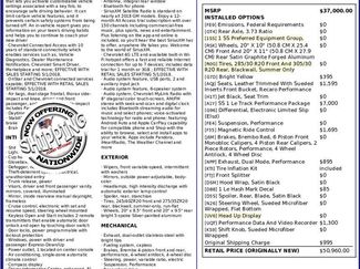 flat-bottom steering wheel and (KS9) sueded-wrapped shift knob (Also includes (UV6) Head-Up Display.(N26) sueded-wrapped(AQJ) RECARO performance front bucket seats(RSK) 20" x 10" front and 20" x 11" rear Satin Graphite forged aluminum wheelssummer-only tiresblackwall(R0G) 285/30R20 front and 305/30R20 rear(D5S) Satin Black rear blade spoiler(DSM) Satin Black hood wrap(FTJ) Satin Black front splitter(FE4) performance suspension(F55) Magnetic Ride Control(NPP) dual-mode performance exhaust(G96) electronic limited slip differential4-wheel disc brakes4-wheel antilockperformance2-piece rotors4-piston rear calipers6-piston front monobloc calipers(J6M) Brembo Red