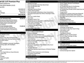 Audi Connect w/Online ServicesAudi Side AssistAuto-Dimming Interior Mirror w/Digital CompassFront anti-roll barIlluminated entryOutside temperature displayPremium Plus PackageRear anti-roll barTechnology PackageWheels: 8.0" x 18" 5-V-Spoke-Design