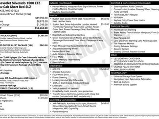 150 Amp AlternatorBluetoothï¾® For PhoneEmergency communication system: OnStar GuidanceEnhanced Driver Alert PackageForward Collision AlertFront Frame-Mounted Black Recovery HooksFront License Plate KitFront anti-roll barHeavy-Duty Rear Locking DifferentialIlluminated entryLED Cargo Box LightingLED Taillamps w/SignatureLTZ Plus PackageLeather Wrapped Steering Wheel w/Cruise ControlsLow Speed Forward Automatic BrakingOutside temperature displayRear Wheelhouse LinersWireless Charging