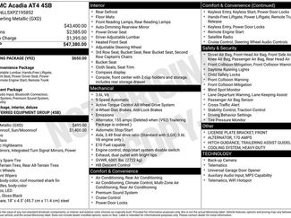 170 Amp Alternator4-Way Manual Passenger Seat AdjusterApple CarPlay/Android AutoEmergency communication system: OnStar and GMC connected services capableFront License Plate BracketFront anti-roll barHitch Guidance w/Hitch ViewIlluminated entryOutside temperature displayPreferred Equipment Group 4SBRadio: AM/FM 8" Diagonal Multi-Touch NavigationRear anti-roll barRoof rack: rails onlyTrailering Assist GuidelinesWheels: 17" Gloss Black AluminumWireless Apple CarPlay/Wireless Android Auto