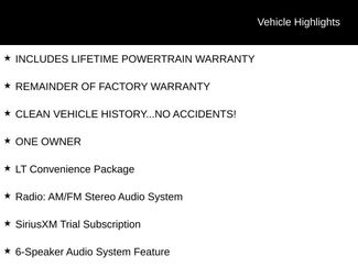 4-Way Manual Front Passenger Seat Adjuster6-Way Manual Driver Seat AdjusterCLEAN VEHICLE HISTORY...NO ACCIDENTS!Cloth/Evotex Seat TrimEmergency communication system: OnStar One EssentialsFront Doors Keyless OpenFront anti-roll barINCLUDES LIFETIME POWERTRAIN WARRANTYIlluminated entryLT Convenience PackageONE OWNEROutside temperature displayPreferred Equipment Group 1LTPremium audio system: Chevrolet Infotainment 3REMAINDER OF FACTORY WARRANTYSiriusXM Trial SubscriptionWheels: 17 Inch Gray-Painted Machined Aluminum AlloyWrapped Steering Wheel