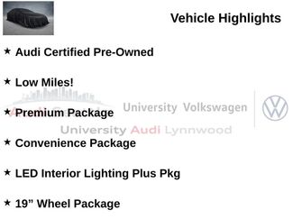 19 Wheel Package19" Wheel PackageAM/FM radio: SiriusXM w/360LAudi Beam - "Ring" Projection LightsAudi Beam-RingsAudi Certified Pre-OwnedAudi Connect PlusAudi Guard Protection KitAudi Virtual CockpitAuto tilt-away steering wheelConvenience PackageFront anti-roll barHeated Auto-Dimming MirrorsIlluminated entryLED Interior Lighting Plus PkgLow Miles!Outside temperature displayPark Assist PlusPremium PackageRear anti-roll barTop View Camera SystemTraffic Sign RecognitionWheels: 18" 5-Arm-Twist DesignWheels: 19" 5-Double-Spoke Design