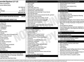 **NICE CARE** Warranty on Brake Pads1 Owner2 Rear USB Charging-Only Ports4-Way Manual Driver Seat AdjusterApple CarPlay/Android AutoBatteryBeltsBluetoothï¾® For PhoneBulbsCarBravo CertifiedClean CarFaxEmergency communication system: OnStar and Chevrolet connected services capableFront Passenger 4-Way Manual Seat AdjusterFront anti-roll barHosesIlluminated entryOutside temperature displayPreferred Equipment Group 1LSPremium audio system: Chevrolet Infotainment 3Rear anti-roll barSpark Plugs and Wiper BlSuper CleanTires